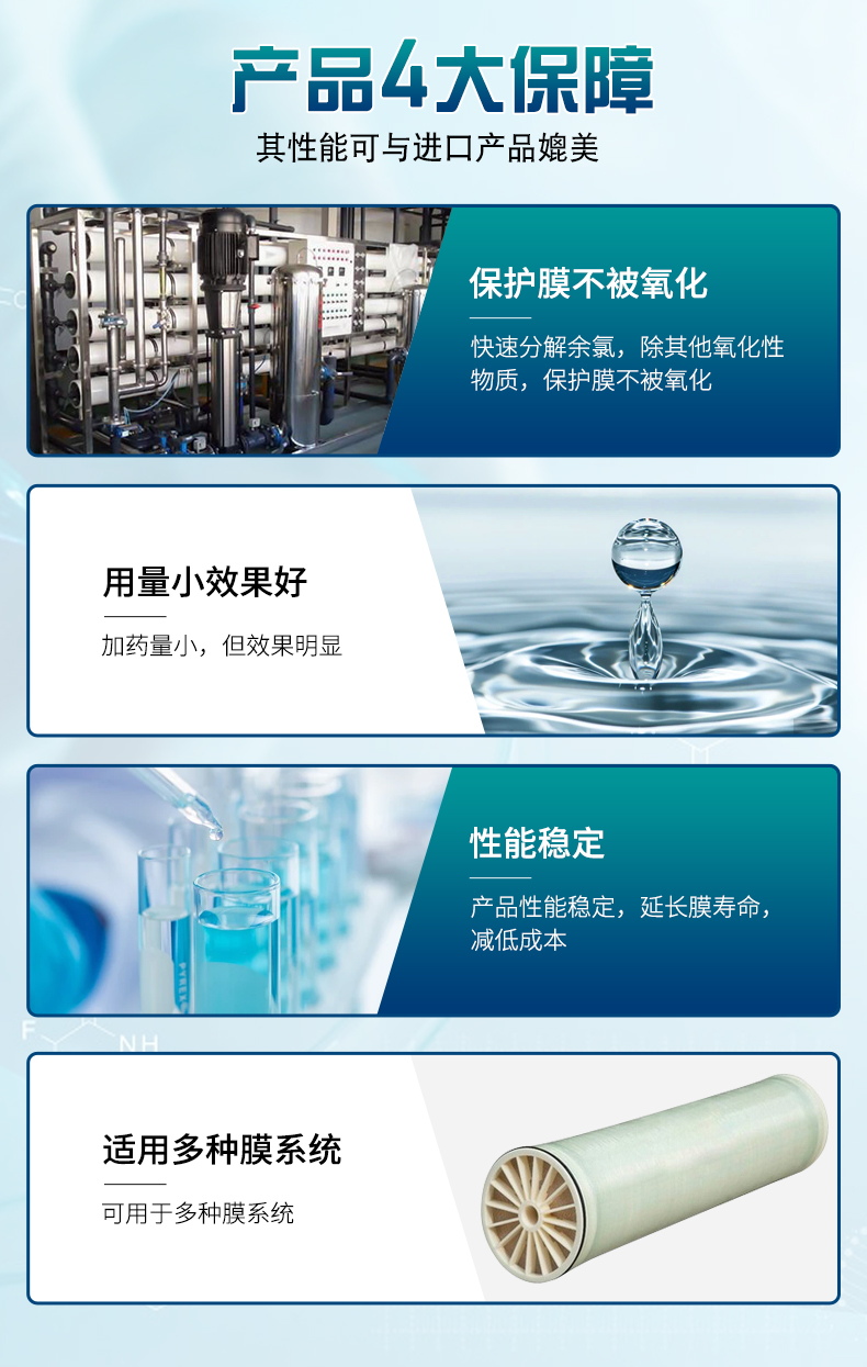 瞬间反应,高效彻底:投加后能迅速与余氯发生氧化还原反应,确保出水余氯绝对达标,保障排放安全。